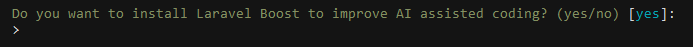 Ensuite on vous demande si vous voulez booster Laravel avec une AI, pour le moment on va répondre no :