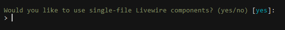 Là on choisit livewire. On a ensuite cette question :