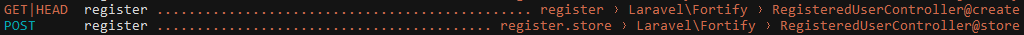 Utilisons php artisan route:list pour voir les routes ajoutées :