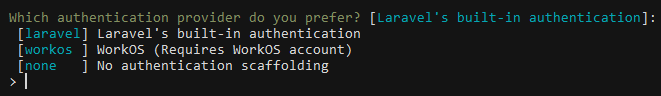 Je parlerai plus tard de WorkOS qui est une alternative intéressante. Pour le moment on choisit la première option laravel.