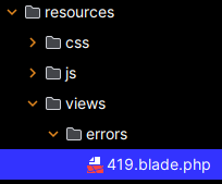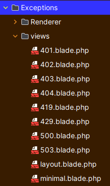 Vous trouvez un dossier des vues par défaut de Laravel pour les erreurs les plus classiques. Vous n'allez assurément pas modifier directement ces vues dans le dossier vendor ! Mais vous pouvez surcharger ces vues en créant un dossier resources/views/errors et en copiant le fichier concerné :
