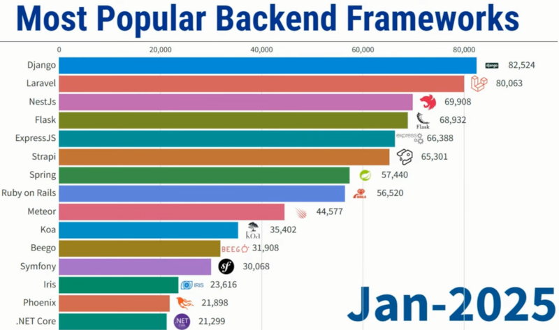 Laravel s'est établi en quelques années au sommet de l'usage des frameworks PHP. Voici des statistiques relativement récentes basées sur la popularité :