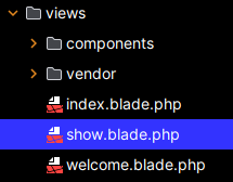 Comme pour la méthode show on utilise une liaison implicite et on obtient du coup immédiatement une instance du modèle. Comme c'est un peu brutal comme suppression il peut être judicieux de fournir un message de confirmation pour l'utilisateur. Je ne vais pas le faire ici pour ne pas trop alourdir le projet et il s'agit uniquement de traitement côté client. Par contre, après la suppression, il faut afficher quelque chose pour dire que l'opération s'est réalisée correctement. On voit qu'il y a une redirection avec la méthode back qui renvoie la même page. D'autre part, la méthode with permet de flasher une information dans la session. Cette information ne sera valide que pour la requête suivante. Dans notre vue index on va prévoir quelque chose pour afficher cette information :