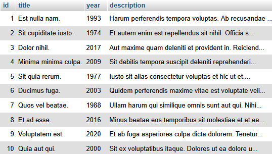 Pour faire simple on va se contenter de 3 colonnes pour le titre du film, son année de sortie et sa description :