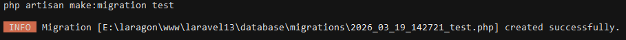 Il existe une commande d'artisan pour créer un squelette de migration :
