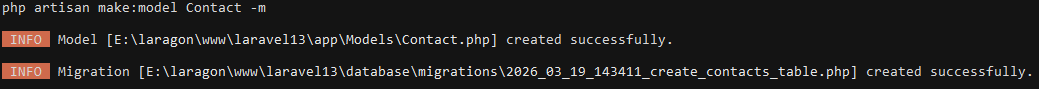 On crée le modèle et la migration tant qu'on y est pour la table contacts :