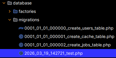 Le nom du fichier de migration commence par sa date de création, ce qui conditionne son positionnement dans la liste. L'élément important à prendre en compte est que l'ordre des migrations prend une grande importance lorsqu'on a des clés étrangères !