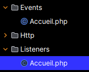 - des classes Listener placées dans le dossier app/Listeners :