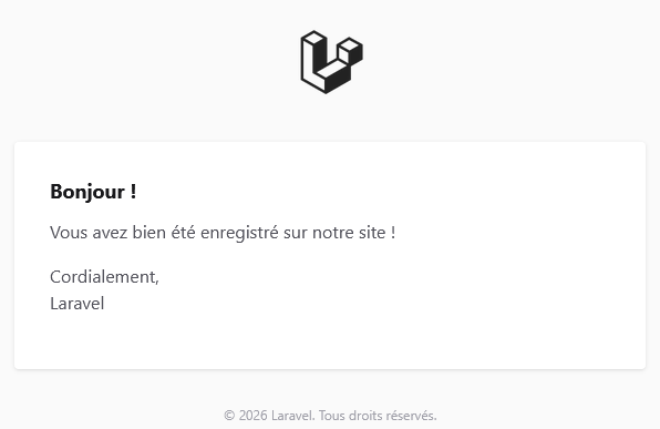 Vous constatez qu'on a une mise en forme de l'email plutôt esthétique. Cette mise en forme est issue d'une vue par défaut dans le framework :