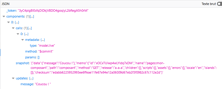 On peut remarquer qu'à chaque changement, on a une requête, il part une requête POST de la forme .../livewire-0902834d/update avec ce corps :