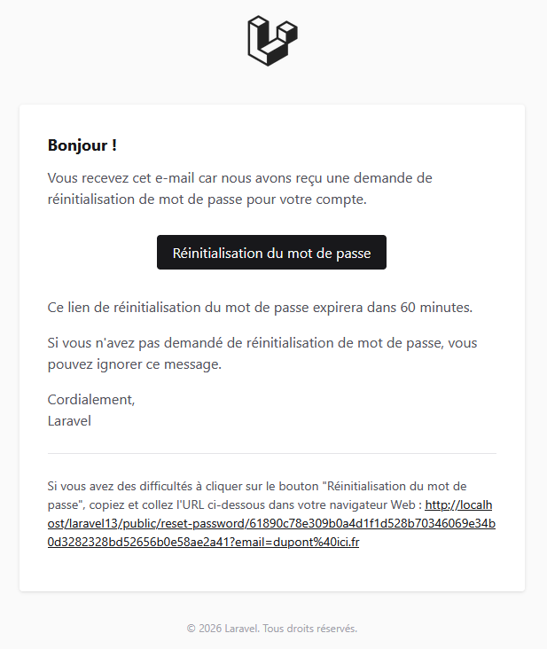 Le présent article est une suite du précédent et il faut avoir mis en place ce qui concerne l’authentification avec l'installation du starter kit livewire.