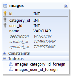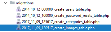 Schema::create('images', function (Blueprint $table) {