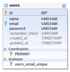 Vérifiez que tout est correct. Pour la table users :
