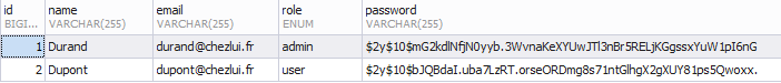 On a donc les deux rôles : user et admin et par défaut c'est user qui est affecté.