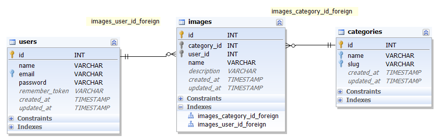 Il ne nous reste plus qu'à nous occuper des images, là aussi nous avons besoin du modèle et de la migration :php artisan make:model Models\Image --migration
