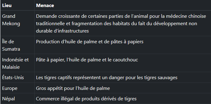 <h2 class="display-4 text-center text-danger p-md-3">Menaces pour les tigres</h2>