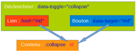 Ce plugin nécessite 2 éléments :- un déclencheur avec l'attribut data-toggle="collapse",