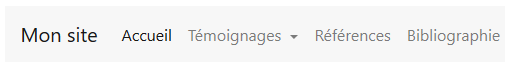 On a vu dans les précédents chapitre que la barre de navigation peut changer d'aspect selon la largeur d'affichage avec la classe navbar-expand-*. Ainsi avec l'exemple de la partie précédente on a cet aspect sur écran large :