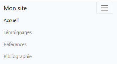 Sur écran de largeur réduite la question se complique un peu... Le problème c'est que la barre devient alors bien encombrante, surtout si elle est chargée ! Le composant accordéon est alors parfaitement adapté ! Voilà une barre équipée de ce composant :