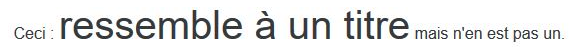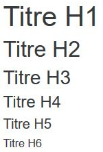 Les balises <h1> à <h6> sont de type block. Imaginez que vous vouliez cet aspect pour un élément en ligne. Vous pouvez alors utiliser ces classes :<p>Ceci : <span class="h1">ressemble à un titre</span> mais n'en est pas un.</p>