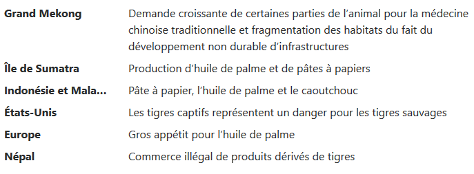 <h2 class="display-4 text-center text-danger p-md-3">Menaces pour les tigres</h2>