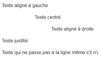 <p class="text-right">Texte aligné à droite</p>