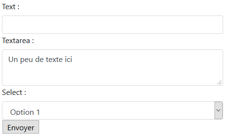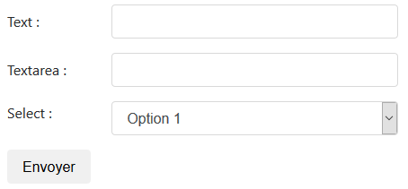 Si on n'utilise aucune classe particulière dans une balise <form>, on obtient une disposition en ligne. Prenons l'exemple d'un formulaire simple :<form>