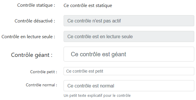 <input type="text" id="inactif" class="form-control form-control-lg" placeholder="Ce contrôle est géant">