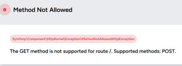 Le paramètre APP_DEBUG a la valeur true. On va le conserver ainsi puisqu’on veut être en mode « debug ». Vous êtes ainsi en mode débogage avec affichage de messages d’erreur détaillés. Si vous la mettez à false (ou si vous la supprimez), avec une URL non prévue vous obtenez maintenant juste :