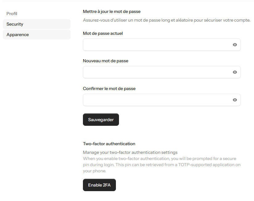 On a vu dans cet article que le starter kit laravel permet une gestion du profil de l'utilisateur :