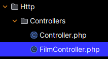 Vous trouvez comme résultat le contrôleur app/Http/Controllers/FilmController :