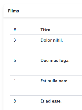 On peut améliorer notre affichage en triant les films dans l'ordre alphabétique sur leur titre :