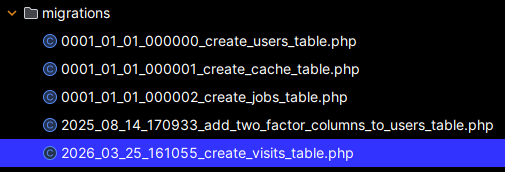 Schema::create('visits', function (Blueprint $table) {