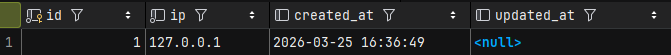 Maintenant, chaque fois que la page d'accueil est ouverte, l'événement Accueil est déclenché et donc l'écoute Accueil en est informée. On sauvegarde alors dans la base l'IP et le moment du chargement dans la table visits.