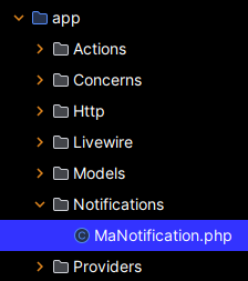 Ce dossier n’existe pas dans l’installation de base de Laravel, il est ajouté lorsqu’on crée la première notification avec Artisan.