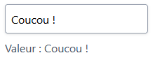 Jusque-là, on n'a rien inventé de bien utile. Par contre, ça va devenir plus intéressant avec la liaison de données. On connait bien ça avec Vue.js par exemple, on synchronise la valeur d'un élément sur la page web avec la propriété du composant.