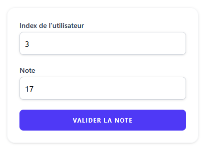 - un composant enfant qui permet de noter l'utilisateur