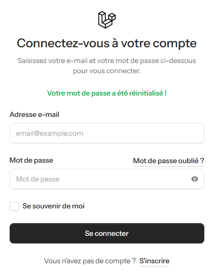 On procède au changement du mot de passe. Enfin, si tout va bien, on renvoie sur la page de connexion avec un message :