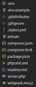 - .env : fichier pour spécifier l’environnement d’exécution.