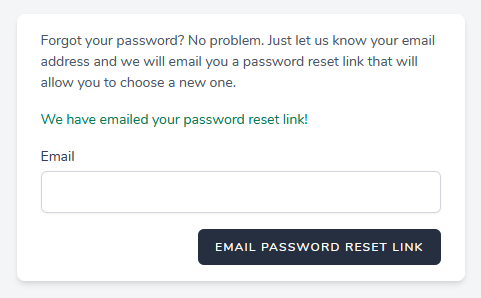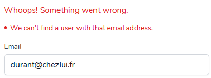 Quand on appuie sur le bouton du message ou si on clique sur le lien de secours, on utilise cette route :Pour le frontend on a la vue auth.reset-password.blade à l'installation du package :