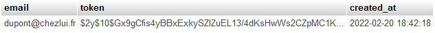 Dans la table un jeton (token) a été généré :