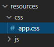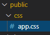 Ce qui a pour effet de créer (en fait ici régénérer parce qu'il existe déjà) le fichier app.css (et aussi celui du Javascript mais j'en parlerai plus loin) :