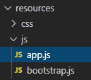 On utilise la méthode js pour compiler le fichier resources/js/app.js dans public/js. On a effectivement ce fichier ici :