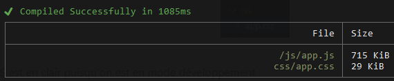 Dans ce mode le code est surveillé et la compilation se lance à chaque changement, ce qui est parfait quand on développe.