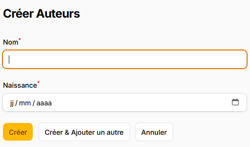 On a de la même manière un formulaire pour la création :
