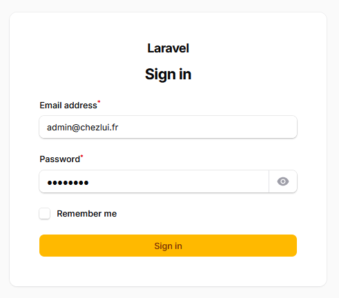 Là, on répond aux questions et le compte est créé. Avec l'URL .../admin/login, on arrive sur la page de connexion :