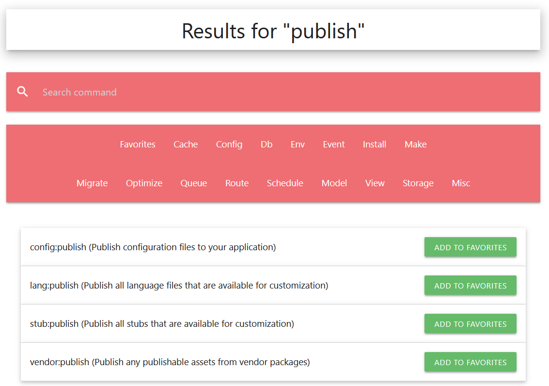 On ne connait pas forcément toutes les commandes Artisan. Le classement par catégories est déjà une première approche efficace. Si ça ne suffit pas j'ai ajouté la possibilité de faire une recherche :