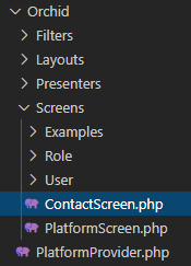 On va imaginer un formulaire de contact, on commence par créer un screen :php artisan orchid:screen ContactScreen