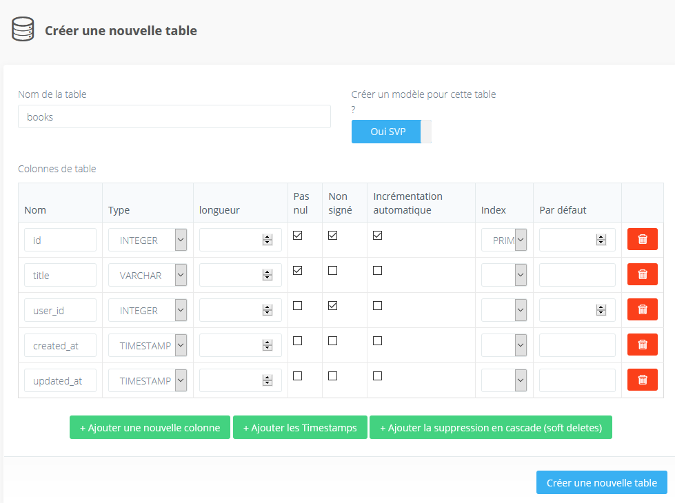 On a vu ci-dessus l'existant mais évidemment ce qui est intéressant c'est de voir comment compléter tout ça en fonction de nos besoins. On va donc imaginer qu'on doit gérer une collection de livres et que ceux-ci ont comme auteurs les personnes de la table users.