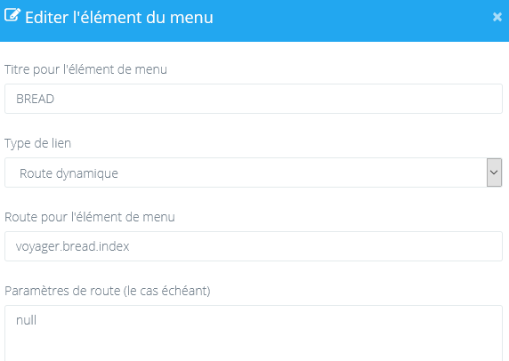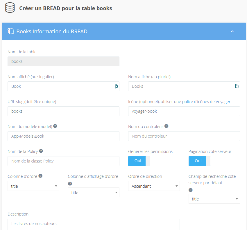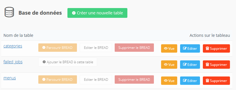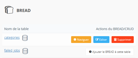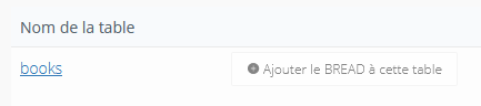 On dispose d'un bouton pour créer le BREAD pour cette table :